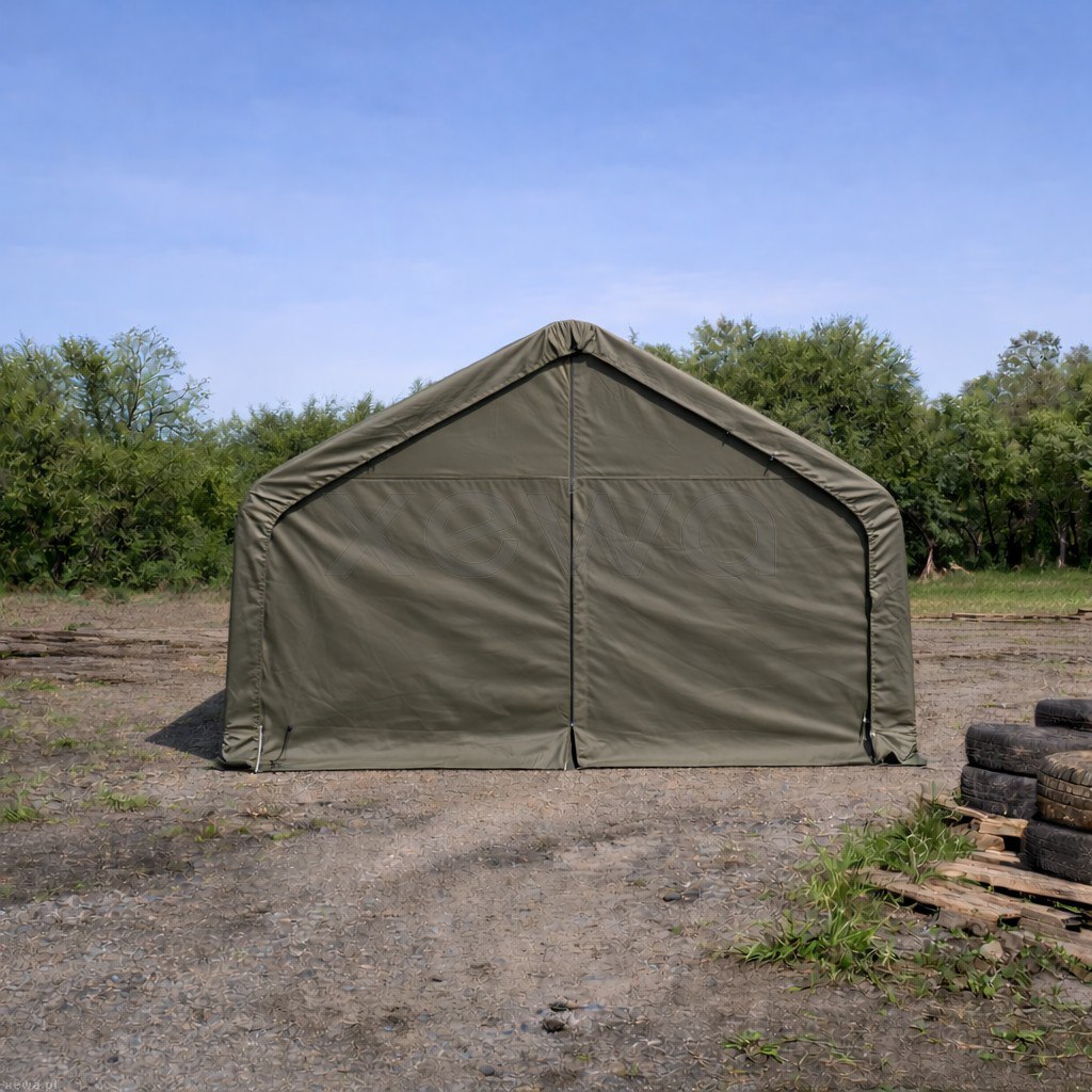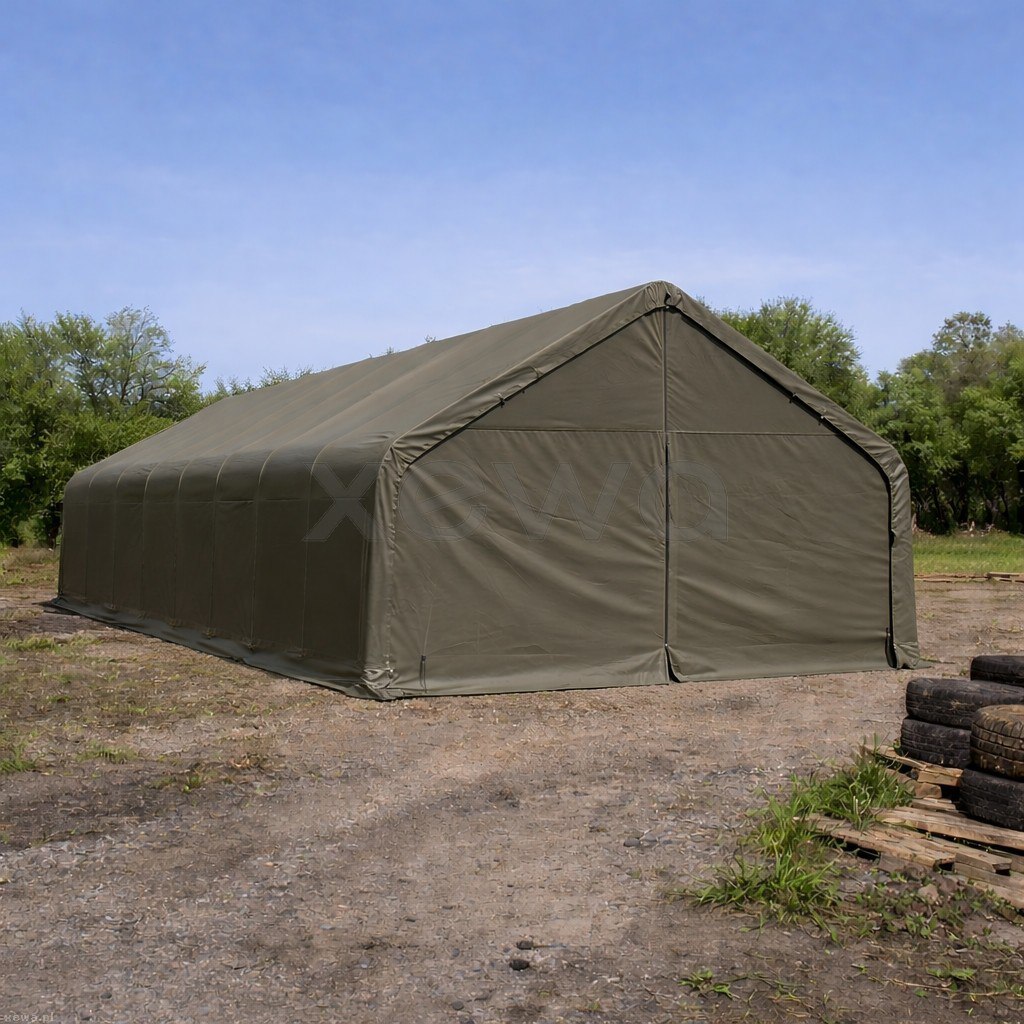 Nośną część hali stanowią stalowe rury z ocynkowaną powłoką, które zapewniają wysoką wytrzymałość i ochronę przed korozją. Konstrukcja została zaprojektowana tak, aby wytrzymać typowe obciążenia wiatrem i śniegiem oraz umożliwiała szybki montaż przy użyciu połączeń śrubowych.